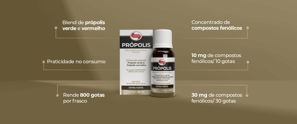 - Fórmula inovadora com blend de própolis verde e vermelho;