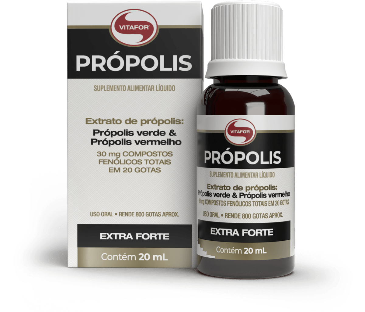O Própolis da Vitafor é composto por blend de própolis verde e vermelho ultra concentrado, proporcionando maior quantidade de compostos fenólicos.